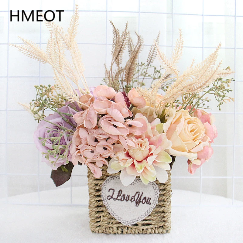 Mawar Dahlia Hydrangea Buket Bunga Kering Bunga Buatan Diy Hiasan Meja Pernikahan Dekorasi Rumah Bunga Palsu Alat Peraga Foto Aliexpress Rumah Taman