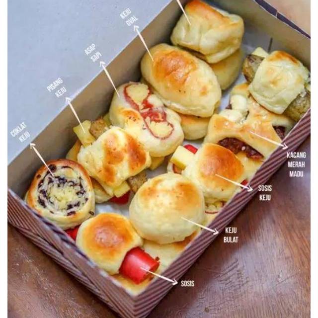 Isi dari roti ini bermacam-macam mulai dari abon keju sosis.